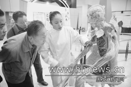 在展示神经系统、呼吸系统、男女泌尿生殖系统等结构的完整剥去皮肤的人体标本前,一些中老年人和青少年驻足围成一圈,详细地向讲解员了解、咨询他们感兴趣的生理知识和医学常识。“我的腰经常疼是怎么回事?”“打肌肉针是往哪里打?”有些老年人还一边指示着标本的具体位置,一边请来自大连大学医学院的老师现场“断病”。年已七旬的退休职工李大爷向记者表示:“这些人体标本的展出对市民的教育意义太深刻了。一方面我们可以了解自己身体每一个部位的具体情况,增长相关的医学和生理知识,一方面也可以根据科普展板的提示和建议,改变现有不好的生活习惯。”
