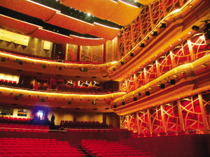 而之前多名来苏州参观科文中心的文化界知名人士,都对大剧院的硬件条件大加赞赏。记者看到,大剧院拥有1200个座位,属于多功能镜框式剧场,舞台可利用面积达320平方米。在偌大的剧院里演出,完全不使用话筒、喇叭,为了使音效达到自然、纯正的效果,大剧院内的天花板和墙壁使用了特别的反音罩,使声音在剧院内反射。