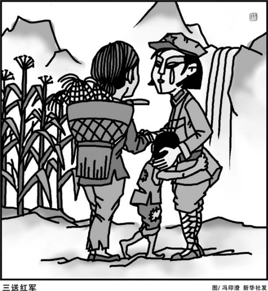 中国共产党领导的中国工农红军与人民群众血肉相连、鱼水相依,体现了全心全意为人民服务的最高宗旨。中央苏区的乡亲与红军同劳动、同生活、同战斗,同生死共患难,结下了深厚的友谊。红军告别了用鲜血和生命捍卫过的红土地及养育自己的衣食父母,苏区人民洒泪送走了自己的子弟兵,留下的是七十多年传唱而经久不衰的《十送红军》――