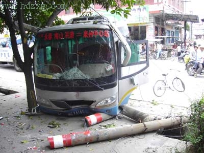 事件实录:一名初中学生骑自行车上学时,与一辆中巴车相撞受伤。而中巴车紧急转向时,在撞断路边的一电线杆后,陷入路边水沟中。