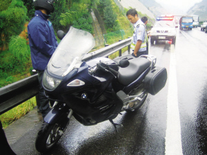 民警控制住这一男子时,他大声嚷嚷:“摩托车为什么不能上高速?”