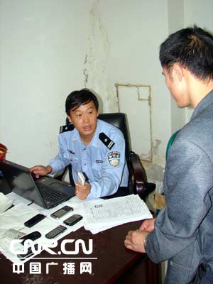 图为负责审查的民警正在讯问爬楼飞贼