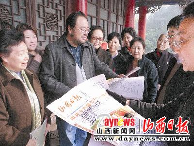 10月13日,一些太原市民正在认真阅读中共十六届七中全会公报。当日,中共十六届七中全会在京举行的消息在各媒体发表,省城各界以不同方式收听收看和学习会议公报。