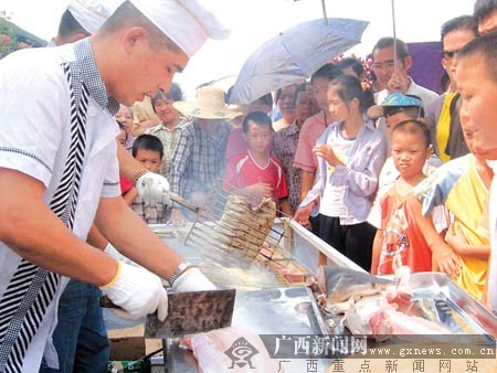 广西新闻网-南国早报南宁讯(记者徐庆成)非洲烤驼鸟、南海烤鲨鱼,各有各的美味。10月13日,第十七届中国厨师节暨2007南宁·东南亚国际旅游美食节江南分会场——江南区邕州老街献出的两道美味,让众多市民一饱口福。