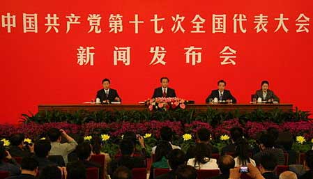 党的十七大新闻发言人昨日下午在人民大会堂举行新闻发布会,大会新闻发言人李东生向中外记者介绍了十七大的议程及有关情况。新闻发布会由大会新闻中心主任翟惠生主持。约600名中外记者参加了新闻发布会。