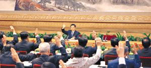 随后,会议在胡锦涛同志主持下进行了各项议程。会议以举手表决方式通过了刘云山、周永康、贺国强、王刚为大会副秘书长。