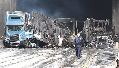 [国际] 洛杉矶以北公路隧道内 16辆汽车连环追尾(图)