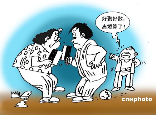 漫画:夫妻经常吵架儿子劝父母“好聚好散”中新社发 谢正军 摄