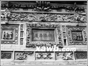 在温家大院,记者注意到,将人生理想和道德追求通过雕刻建筑装饰表现出来是宝鸡关中民居的一大特色,赋予了关中民居独有的艺术、文化气息,成为我国建筑文化的宝贵遗产。进入温家的中院,一座建筑优美的牌楼特别引人注目,这是一座完全用青石雕刻的牌楼,有5米多高,宽有3米左右。两边雕刻着一副意味深长的对联,上联为“渭北祥云绵世泽”,下联是“终南佳气耀中庭”,横批为“福缘善庆”。对联两边雕刻着人们其乐融融的生活场景,有的在行礼、有的在耕作。门楼顶部,在精雕细刻的花草环绕下,一只石雕的凤凰仿佛活了一般,正展翅飞翔。整个门楼精雕细琢,古朴大方,为宅院增添了几分艺术气息。
