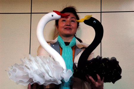 妙手生花 逼真天鹅铁骨架 东亚经贸新闻 2007.10.1803:32 关注 俞女士带来自己的手工艺品。记者 董海东 摄东亚讯(记者 庄利铭) 今年46岁的长春市民俞媛是远近闻名的“妙手姐姐”,擅长壁画、珠饰、环保树脂、布艺、丝网花、中国结、泥人、雕刻等10多种手工艺技艺。昨日下午,俞媛拿出两只“天鹅”,一黑一白,活灵活现。她说,这是她“黄金周”期间做的,“天鹅”的骨架用铁丝制成。