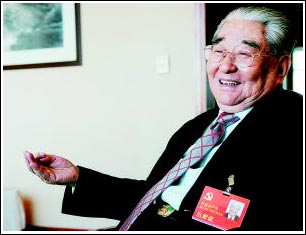 “党的全国代表大会我参加了6次,一次比一次高兴。”韩培信代表是出席党的十七大的“高龄代表”之一,86岁的他与党“同龄”,现在依然精神矍铄,思路清晰。他对如何更加坚定地走中国特色社会主义道路、夺取全面建设小康社会新胜利充满信心,并就如何更好地实现党和国家的战略目标提出自己的意见和建议。