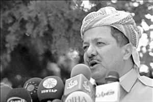 伊库尔德自治区领导人巴尔扎尼19日重申反对土政府越境动武,誓言将“保卫家园”(右图)。
