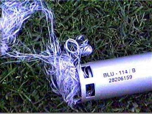 石墨炸弹的军事用途之一是可以破坏一个城市的电力网络。图为美国BLU-114型石墨炸弹(资料图片)
