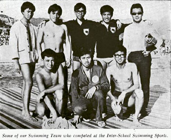 钱果丰当年是学校泳队成员(前排左一) ,曾代表学校参加比赛,怪不得每当放学,他定必拿潜水镜到沙滩游泳,还利用「自家制」的鱼枪来捉鱼。(圣士提反书院提供;图片来源:香港明报)