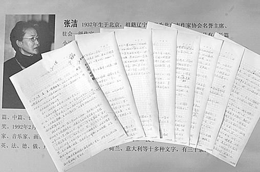 都说是“文如其人”,其实,我更觉得是“字如其人”。你看,王蒙的手稿是随手抓住的两页小信笺,上面匆匆记下几行字、两句话,这非常鲜明地体现了他的本性——当年,我在他刚当上文化部长时,就发现了他不同于别人的一个秘密:他是一位随时随地都在思考的作家,写作思维好像就没有停止的时候。那时他没有整块时间了,就尝试写诗,短诗,几乎是看见什么就写什么,有一首写易拉罐的短诗就是在本报“文荟副刊”发表的,可以说王蒙天生就是为文学而生的。林斤澜直到现在还是手写,他老人家的字横平竖直,规矩整齐,像珍珠一样圆润,仿佛能听到“大珠小珠落玉盘”的清朗之声,就像他走到哪儿就带到哪儿的“呵呵”的笑声一样。张洁的字宛若她的为人,认真,清秀,雅致,看上去仿若上等的女红绣片,特别具有知识女性的美丽动人的气质,我甚至感觉比她的真人还老练、从容。
