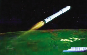 事实也正是如此——火箭升空后瞬间便钻入厚厚云层,肉眼和摄像机无法看到它的身影;此时,发射、飞行安全控制系统立即启动,依据雷达数据实时描绘出火箭运行姿态和轨道以及地面地形状况。这一重要程序经过电视转播,就成了全球亿万观众观赏“嫦娥”跨洋过洲直入太空的绝妙画面。