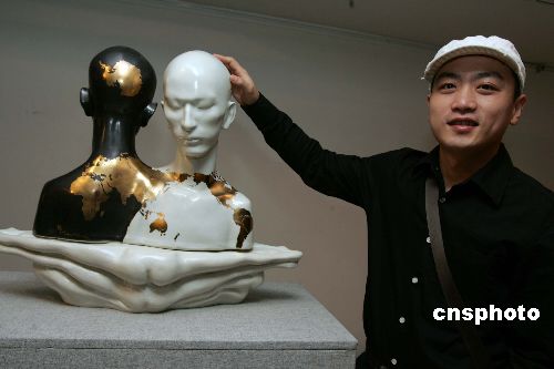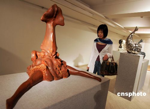 十月二十六日,中国青年雕塑家郅敏个人作品展在上海举行,《双生系列》、《美人鱼系列》等十多件代表作被誉为“以中国文化为根基,对生命矛盾的另一种解读”。中央美术学院雕塑系三十二岁的郅敏创作的现代陶瓷艺术作品得到国际艺术界的认可。中新社发 潘索菲 摄