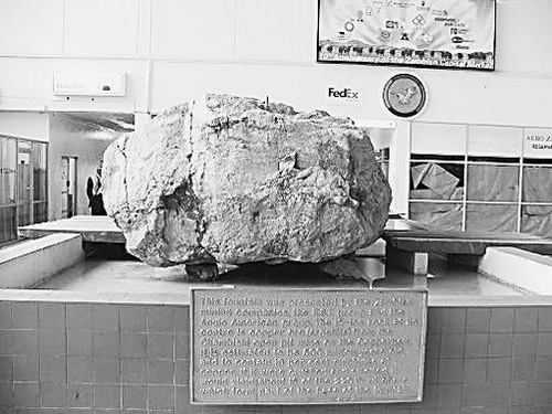 陈列在赞比亚首都卢萨卡国际机场大厅里的巨大铜矿石。