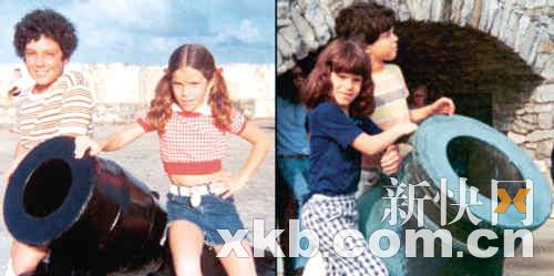 童年 两姐妹跟着哥哥去不同地方旅游时照了一张类似的照片。
