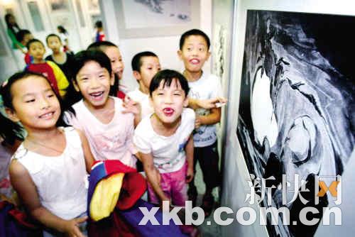 新快报讯(记者 尹来 实习生 黄文杰 通讯员 付莹)不临摹名师佳作,甚至不从基本水墨技法学起,能学好中国水墨画吗?一场独特的新水墨画热风在广州市第二少年宫刮起。曾任香港艺术馆总馆长的谭志成先生带着149幅学生作品来到广州,其别具一格的画风给现场的家长和“小画家”们带来不少震撼(见上图,夏世焱/摄)。