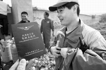 “我们刚才属于正常飘飞”,身穿卡其色上衣的男子给大家递来一个蓝黑色的小本,上写“民用航空器驾驶执照”。