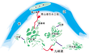 水务专家介绍,即将开工的青山港引水工程和九峰渠是调水工程的重要部分,青山港引水工程“引江济湖”,九峰渠则将东湖和严西湖连通。