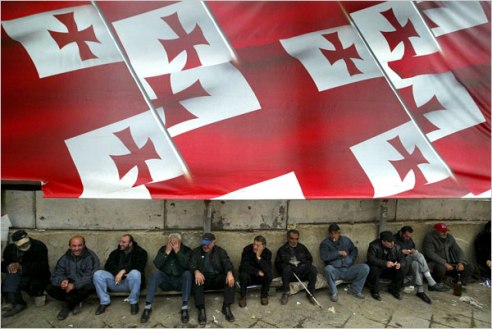中新网11月7日电 综合报道,从11月2日开始的格鲁吉亚国内示威游行活动到6日已经进入第5天。示威游行与政府的冲突升级。有数千名示威者包围了格国会大厦,并要求格鲁吉亚总统萨卡什维利辞职。格国会大厦前插满了格鲁吉亚国旗,很多军警在现场戒备,防止发生不测事件。