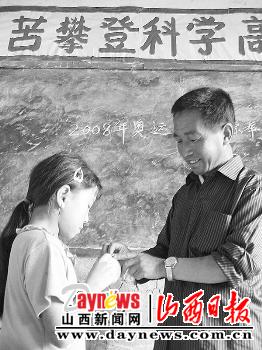 另一所学校里是40多岁的许生荣老师,前几年他家已从平顺县整体移民,搬到更好的村里去住了。搬完家后,他没有走,仍留在山上,担负着6个自然村20多个娃儿的教学。他教了24年书,就在这山上呆了17个年头,在这17年中,他最担心的就是家长来商量着领回自己的孩子。尽管孩子只有十多岁,但在家里已经成了一个好劳力。许爱香在走出校门前一共失了3次学,硬是被许老师找回来3次。爱香的父母说:“算了吧,念书在这山崖上会有啥出息?还是实际点种点地,收上粮食了肚子就不饥。”