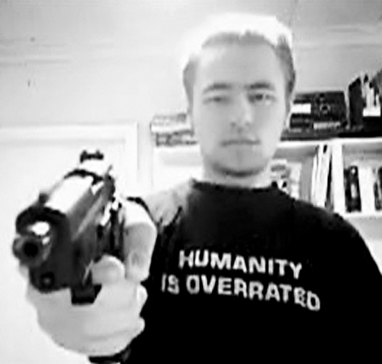 在这段题为“约凯拉学校大屠杀”的录像中,先是约凯拉学校校园外景,随后出现一名青年男子手持手枪指向前方,威胁说要将所有他看着不顺眼的人干掉。