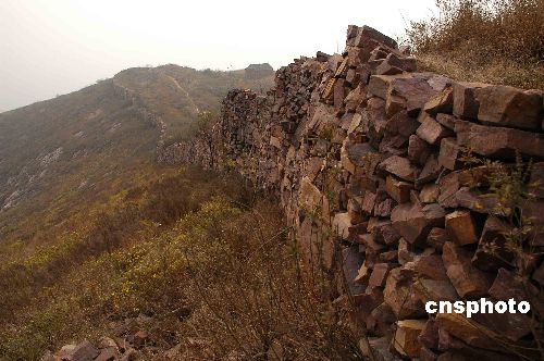 图为11月10日拍摄的河南叶县歪头山楚长城遗址。经中国长城专家考察认定,确认现存于河南叶县境内从辛店乡到常村乡歪头山之间的近50公里的所谓“土龙”,就是建筑年代不晚于战国(公元前475~公元前221)时期的楚长城(楚国,公元前740~公元前202)遗址,距今至少已有2500年的历史。据了解,叶县楚长城全用巨型片石干垒而成,有的高7米左右,现有城门2座,烽火台1座,蓄水池3座,古代兵营营房13处等遗址。中新社发 杨正华 摄