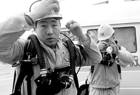 河南平煤十矿瓦斯事故发现3名遇难者 石狮日报 2007.11.1401:40 关注 11月13日,两名平煤集团救护大队的救护人员在整理装备准备下井。截至13日11时40分,河南省平顶山煤业集团十矿发生的煤与瓦斯突出事故,已经发现3名遇难者。救援人员正在全力搜救其余9名矿工。12日凌晨3时左右,平煤集团十矿一个综合采掘工作面发生一起煤与瓦斯突出事故。当时井下有24名矿工,其中12人安全升井,12人被困井下。(新华社发)