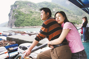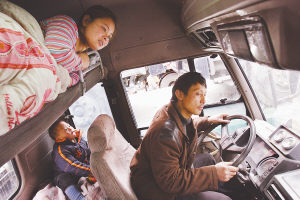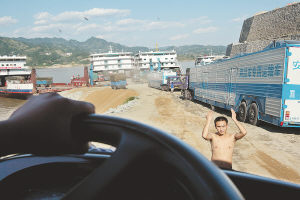 长途车司机很少有女的,滚装船上是男人的世界。可重庆人例外,不少年轻人开起了“夫妻车”。妻子蒋雨容依偎着爱人胡建,“他是老板,我是‘丘儿’(重庆俗语,小伙计)。‘丘儿’我,下车管账、洗衣服,上车陪说话、看倒车镜。4个小时逼他休息一下,那时我就照看车。结婚4年来,汽车就是我们的家。他开车到哪里,我就跟到哪里。”
