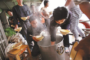 滚装船上是长途车司机改善伙食的地方,既有热饭热菜,还可以喝点小酒。
