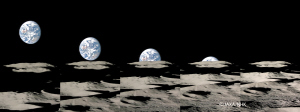 通过利用广角镜头拍到的“地出”景象,可以看到在火山口大小错落、荒凉的月球北极附近,蓝色的地球浮出“月平线”。
