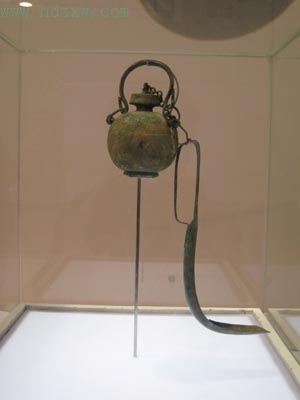 在公元前720年的一次古代奥运会上,一位年轻运动员赛跑时不慎将“兜裆布”掉在跑道上,但他坚持跑完了全程。这时,希腊人突然发现裸体竞技更能体现运动员形体的健美和姿态的动人。自此,裸体竞技成为风尚。裸体竞技前,运动员都用橄榄油擦身,既可在烈日下保护皮肤,又显得矫健优美。这件带有刮身板的双耳圆环瓶见证的就是这段历史。
