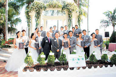 九对准新人昨日于黄金海岸酒店试行婚礼。(图片来源:香港成报)