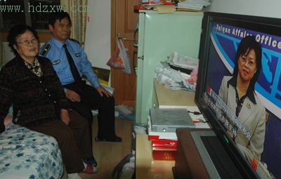 范丽青的母亲与弟弟在观看她主持的国台办新闻发布会