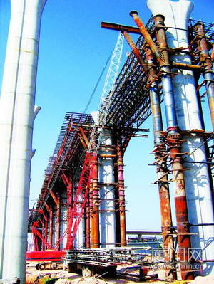 杏林大桥桥面采用现浇,A标段东西走向4.2公里,南北走向1.5公里,跨319国道和鹰厦铁路施工。