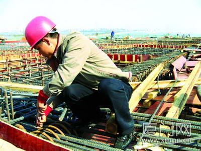 中铁大桥局五公司杏林大桥项目经理部范万祥经理说,这里是厦门目前离地面最高的桥梁。在杏林互通这头,大部分桥墩高度在25米以上,最高的一座桥墩,从桥面到地面有40米。“别说施工了,就是站上去,头就晕了。”