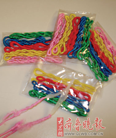 本报11月16日讯 近来,避孕套彩头绳在媒体和网络上炒得沸沸扬扬。今天,记者走访了几个小商品城,发现彩色头绳仍然热销泉城,尤其受年轻女性的喜爱。对于彩头绳的制作原料,大多数卖主和消费者均称不知情。