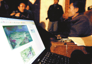他称:“野生华南虎和人工饲养的老虎皮毛色泽是不一样的。”记者解释了半天,他听不懂利用电脑其实可以很容易做到改变色泽,只是一直摇头说“(两张图)不是一回事。”