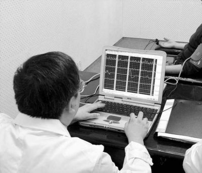 如何利用多参量心理测试仪进行测谎呢?杨教授介绍,测试人员根据所要调查的问题或案件,事先设定好一系列问题,再逐一向被测人提问,要求被测人只回答一个字:“是”或“不”,或者缄默。如:你杀害了王五吗?是你偷走了密码箱吗?你以前做过假账吗?你过去想过偷别人的东西吗?所问的每个问题对被测人心理都是一个刺激,从而通过植物神经系统触发他的生理反应,引起生理参数的变化;多参量心理测试仪则以图谱的形式记录这些生理参数变化,进行分析,判断被测人回答问题时的心理状态,对这个问题的回答是“诚实”还是“说谎”,从而得出被测人与所调查问题或案件有无关系的结论。