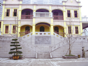 老江北城的刘家院子,原是一栋仿别墅的两层楼独立洋房,外观看去颇有中西合璧的风格,中央有一个十多平方米的天井,在众多老建筑中显得甚为独特。为了保持刘家院子原貌,进驻刘家院子的上岛咖啡放弃了全国统一的装修风格,地上铺了老旧的青石板,保留原有的天井,天井中放置一架木头秋千供市民游玩。二楼临街的木栏杆,都采用刘家院子的原物,从外表上看,如果没有招牌,你绝不会想到这是一家咖啡厅。