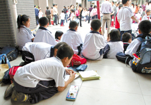 5时30分许,空地上仍然嘈杂混乱。记者留意到,教学楼里除了第一层几间仍在进行课外活动的教室之外,其他教室都已经熄灯。天色渐暗,凉风徐来,不少学生仍在等待。