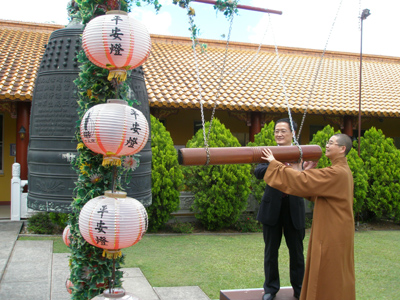 中领事访澳洲佛光山中天寺 敲钟为华人祈福(图)