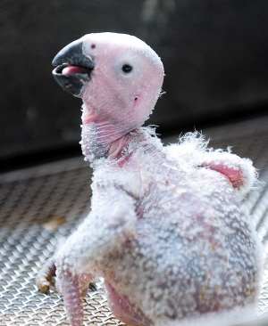 欢乐鸟园曾孵化出一只有缺陷的兔唇非洲灰鹦鹉(见左图),经过陈仕焯和工人的日夜守护,最终用智慧和艰辛救活了这只鹦鹉:“因为它也是一条生命。”现在,这只兔唇鹦鹉已经快3个月大了。