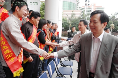 市领导郑道溪、何锦龙、宋长青、张贻伦、洪泽生、吴共湖,同踏过红地毯的勇士们,一一亲切握手慰问并合影留念。