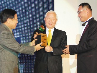 颁奖典礼上,两岸企业家云集。台湾知名人士王建煊目前在浙江平湖办新华爱心学校,资助清寒学生,昨天也特别驱车一个半小时,从平湖赶赴上海参加盛会。