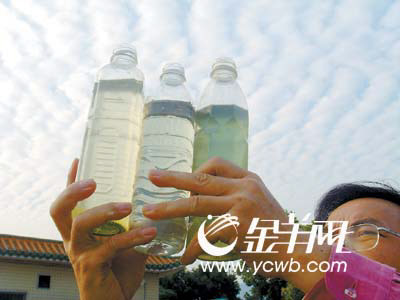 记者发现,污水流进人工湿地后,并没有马上流入星湖,“必须沉积10-12小时,让有机质得到充分降解后才能排出”。陈学年说完从经过沉淀后的芦苇地终端取来一瓶水,又分别从星湖和未经处理的污水中各取来两瓶,三瓶水进行比较,记者发现,从污水口取出来的水发黑发臭,从芦苇地里放出的水显得清澈,比星湖水略清,也嗅不到异味。记者从这项试验的一份评价看到:水质达到一级污水排放标准。