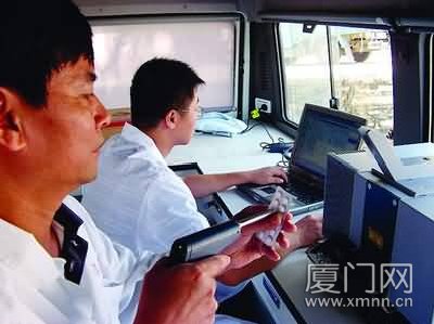 在药检车内,工作人员不需开封药品,只要用专业的仪器就可以鉴定药品真伪。(王蔚然摄)